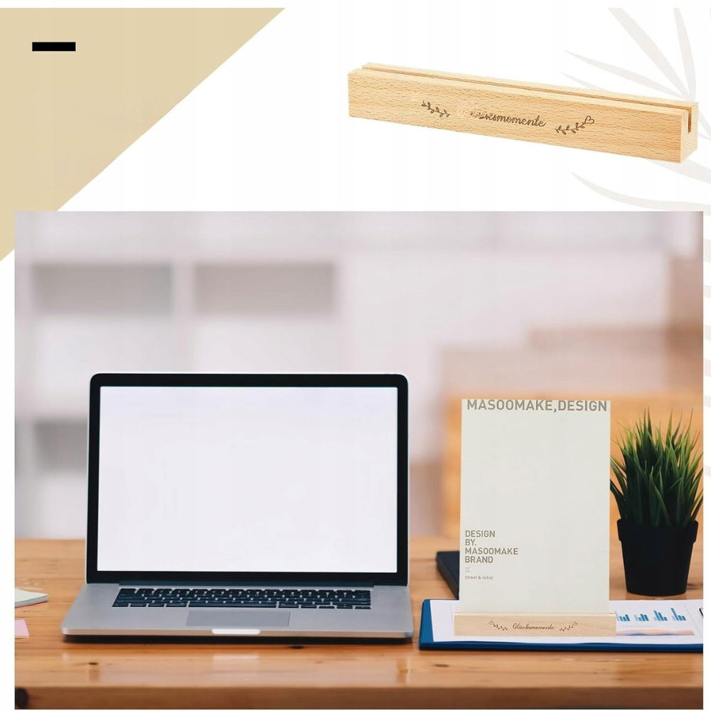 Drewniane podstawki o wymiarach 15 × 2 × 2 cm mają prostą, ale solidną formę, dzięki której stabilnie utrzymują zdjęcia i kartki zarówno w orientacji pionowej, jak i poziomej. Rowek o szerokości 4 mm idealnie nadaje się do kart papierowych, a także cienkich płyt akrylowych.