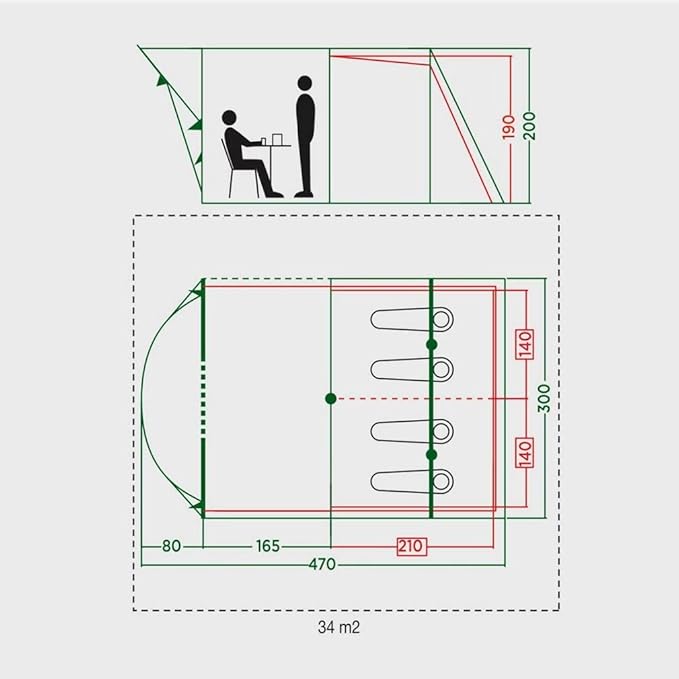Ściany wykonane są z poliestru, który chroni przed opadami deszczu. Namiot zawiera również torbę do przenoszenia, śledzie oraz liny napinające, co ułatwia jego transport oraz instalację.
