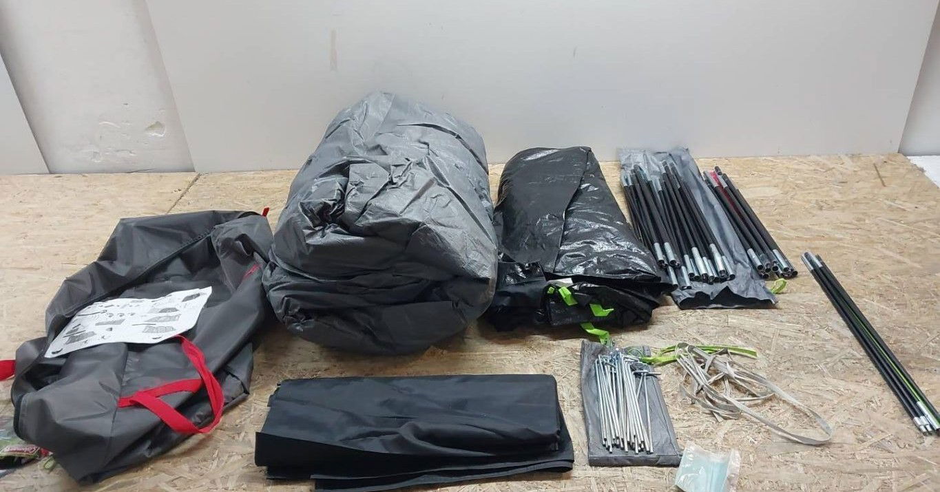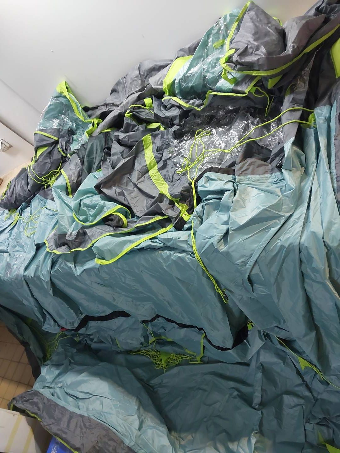 NAMIOT POSIADA NIEWIELKIE ZABRUDZENIA, LEKKO ROZŁAMANY PAŁĄK Z ZIELONYM ELEMENTEM (NIE WPŁYWA ZNACZĄCO NA ROZSTAWIENIE NAMIOTU)