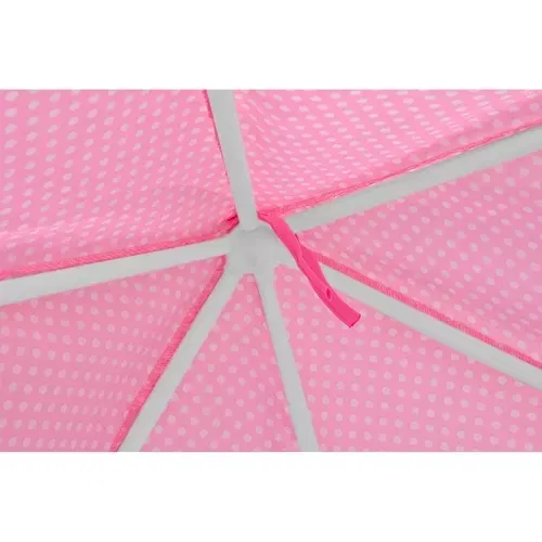 - SPECYFIKACJA – kolor: różowy; poliester + powłoka PA, pozostałe: nylon) + stelaż (PVC); wymiary: 135 x 135 x 140 cm; waga: 1,03 kg; waga w opakowaniu: 1,035 kg.