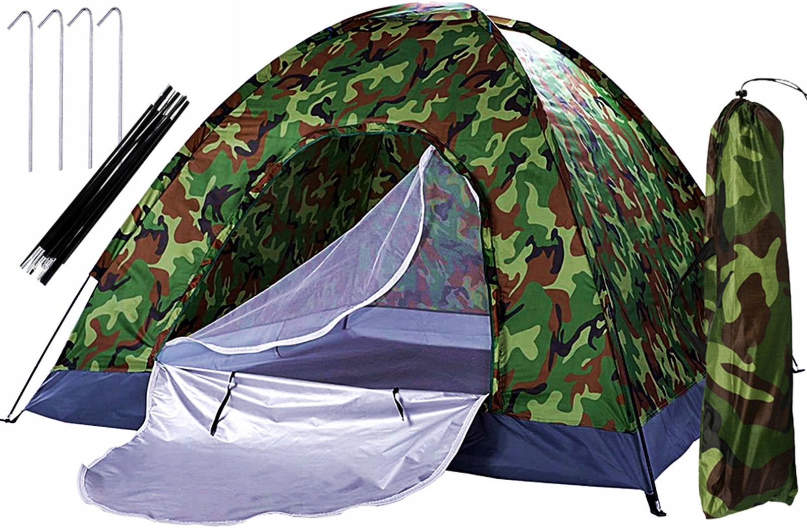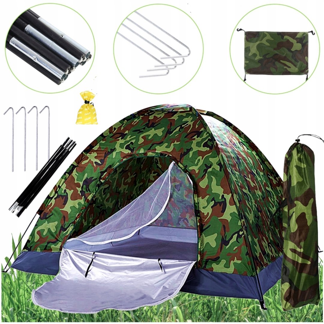 NAMIOT TURYSTYCZNY 4 OSOBOWY KEMPINGOWY WODOODPORNY WĘDKARSKI + ODSTRASZACZ NA KOMARY I KLESZCZE W ZESTAWIE: Namiot moro z moskitierą i dwustronnym zamkiem Szpilki 4szt Daszek na górną wentylację Składane rurki stelażowe 2 x 7 elementowe Pokrowiec z uchwytem Odstraszacz na kleszcze i komary, woreczek nasączony olejkiem Citronella Wykonany z wodoodpornego poliestru, zaopatrzony dodatkowo w sufitowy wywietrznik (moskitiera górna). Bardzo łatwy w montażu około 5 min . Stelaż wykonany z włókna szklanego , zamykany na dwustronny suwak. Namiot po złożeniu ma bardzo małe wymiary, a dzięki pokrowcowi jest bardzo łatwy w transporcie . Wymiary: 208 x 208 x 145 cm Wymiary w pokrowcu 58 x 14 cm Stelaż - włókno szklane 2 x 7 elementów Materiał poszycia - POLIESTER Szpilki - 4 sztuki Moskitiera Górny wywietrznik z moskitierą Kolor - MORO CECHY PRODUKTU : Idealny na wypady za miasto, wycieczki itp. Chroni przed wiatrem i deszczem. Posiada górny wywietrznik i moskitierę Do jego rozłożenia wystarczy nie więcej niż 5min WODOODPORNY - namiot wykonany został z wysokiej jakości wodoodpornego materiału, który wytrzyma nawet 2000 mm słupa wody . Dzięki niemu, podczas biwaku nie musisz przejmować się, że złapie Cię niespodziewany deszcz. Parametry te pozwalają spać spokojnie, bo bez trudu zabezpieczają namiot przed opadami atmosferycznymi. ŁATWY W TRANSPORCIE POKROWIEC W ZESTAWIE - namiot w zestawie posiada również pokrowiec dzięki czemu po złożeniu możesz go komfortowo przenieść oraz przechowywać . Namiot w pokrowcu zajmuje niewiele miejsca. Pokrowiec posiada praktyczną rączkę . W zestawie woreczek zapachowy na biwak - skuteczna ochrona przed komarami i kleszczami - nasączony olejkiem z Citronelli. Planujesz wyprawę na łono natury pod namiot? Mamy dla Ciebie idealne rozwiązanie! Nasz woreczek zapachowy na biwak skutecznie odstrasza komary i kleszcze zapewniając Ci spokojny wypoczynek np na hamaku czy podczas grilla. Zapach Citronella charakteryzuje się silnym, słodkim, cytrusowym zapachem. Ma właściwości skutecznie odstraszające owady - komary, muchy, pchły i kleszcze . Jest idealny podczas letnich wieczorów na świeżym powietrzu lub w domu przy otwartym oknie.