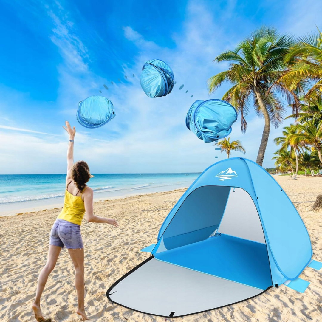 Namiot plażowy typu Pop Up, automatyczny, przenośny, dla 2-3 osób, ochrona przed promieniowaniem UV 50+, namiot kempingowy, ochrona przed wiatrem, mały rozmiar po spakowaniu, dla rodziny
