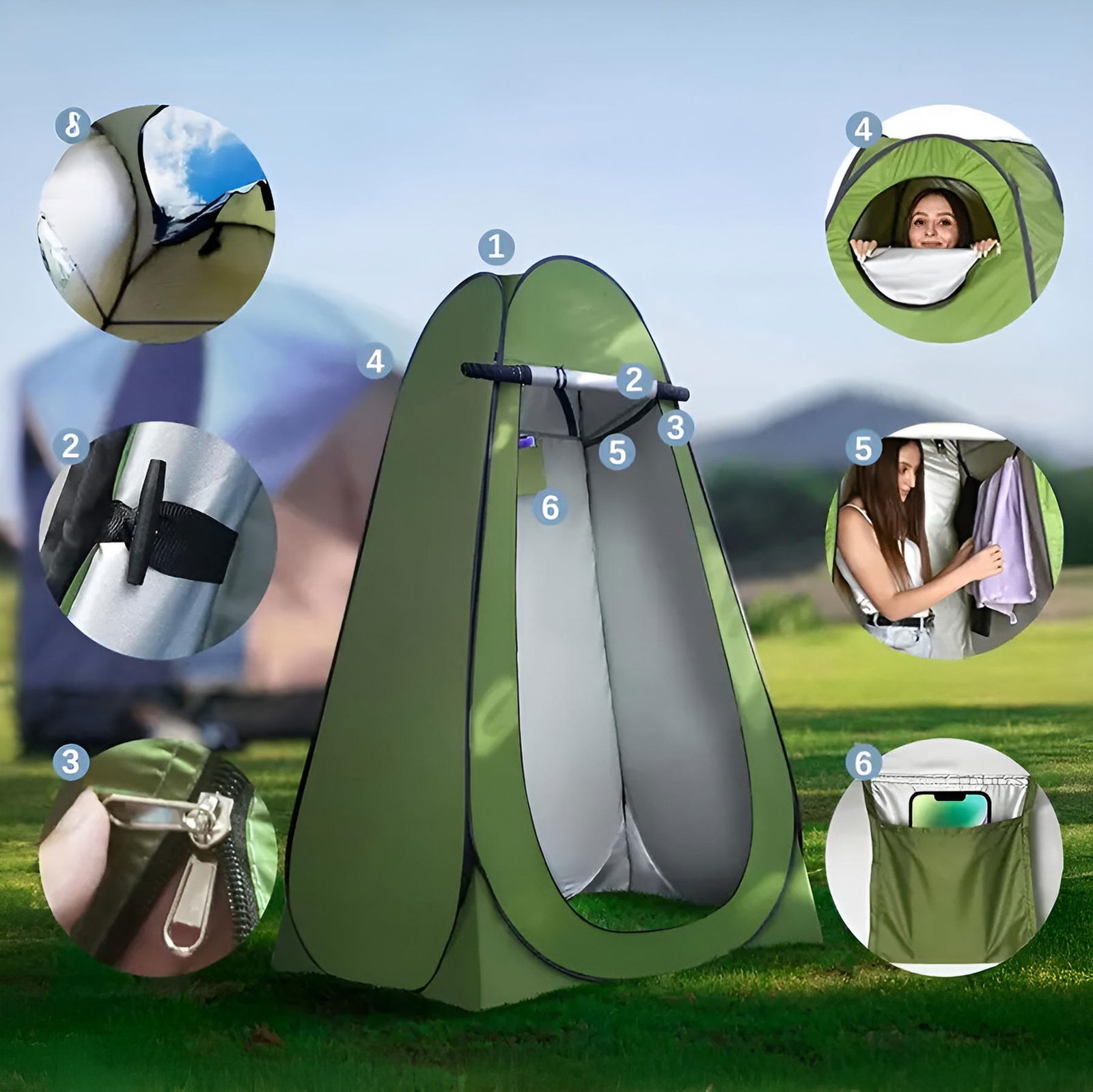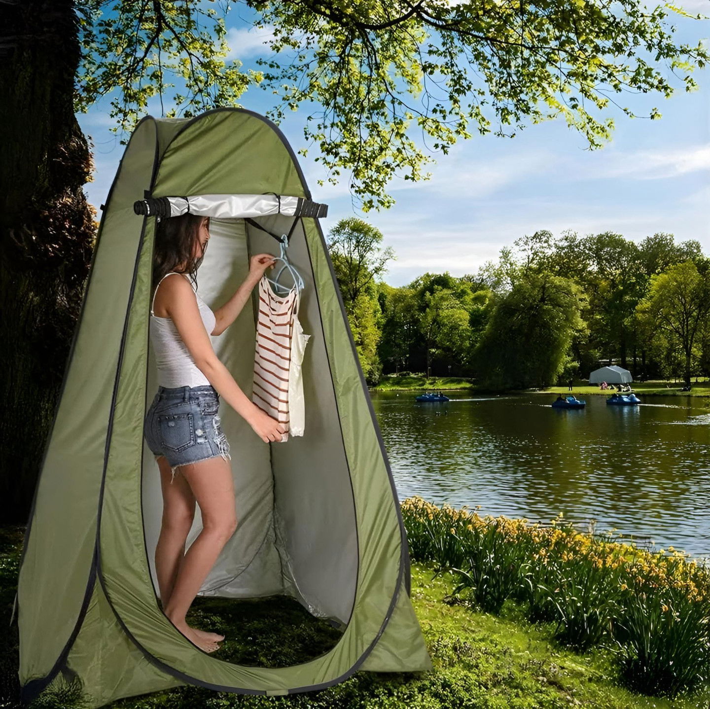 ✔️ Namiot prysznicowy – idealny na kempingach z prysznicem turystycznym.