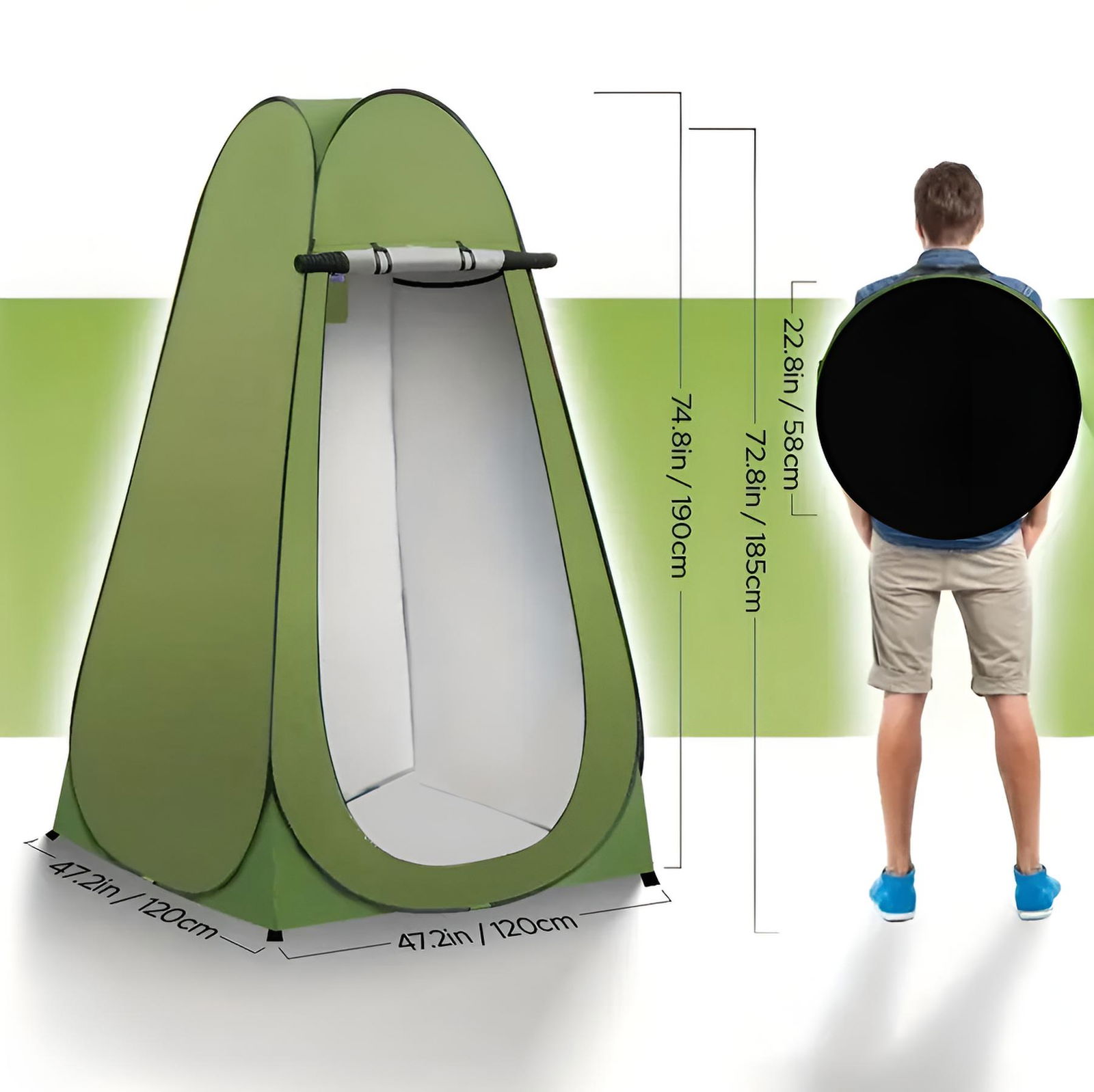 Może służyć jako przebieralnia, namiot prysznicowy, toaleta turystyczna lub schronienie przed słońcem i wiatrem.