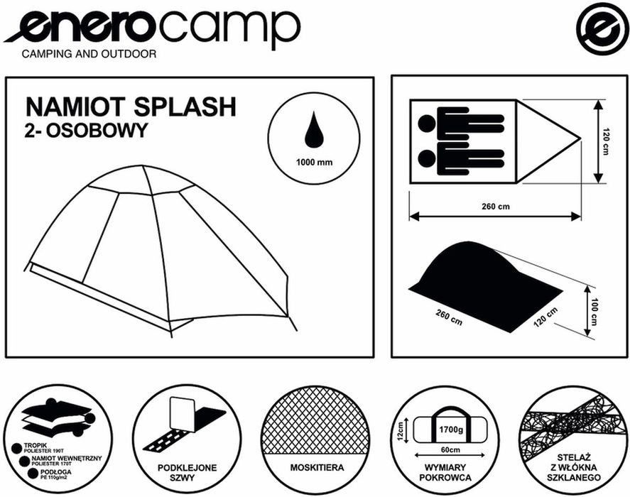 Namiot turystyczny 2 osobowy splash z tropikiem royokamp