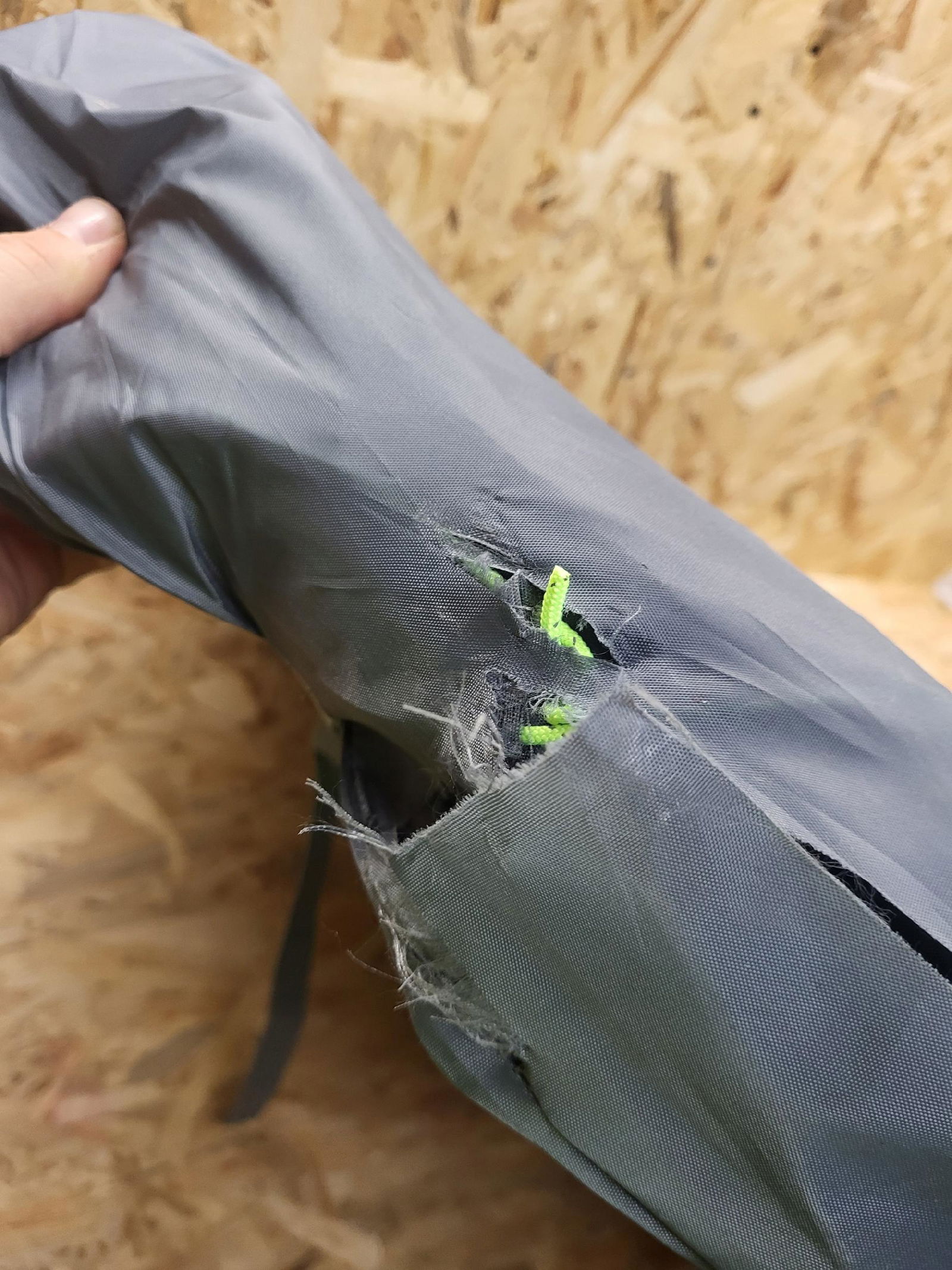 Uszkodzony pokrowiec po transporcie jak na zamieszczonych zdjęciach !!!