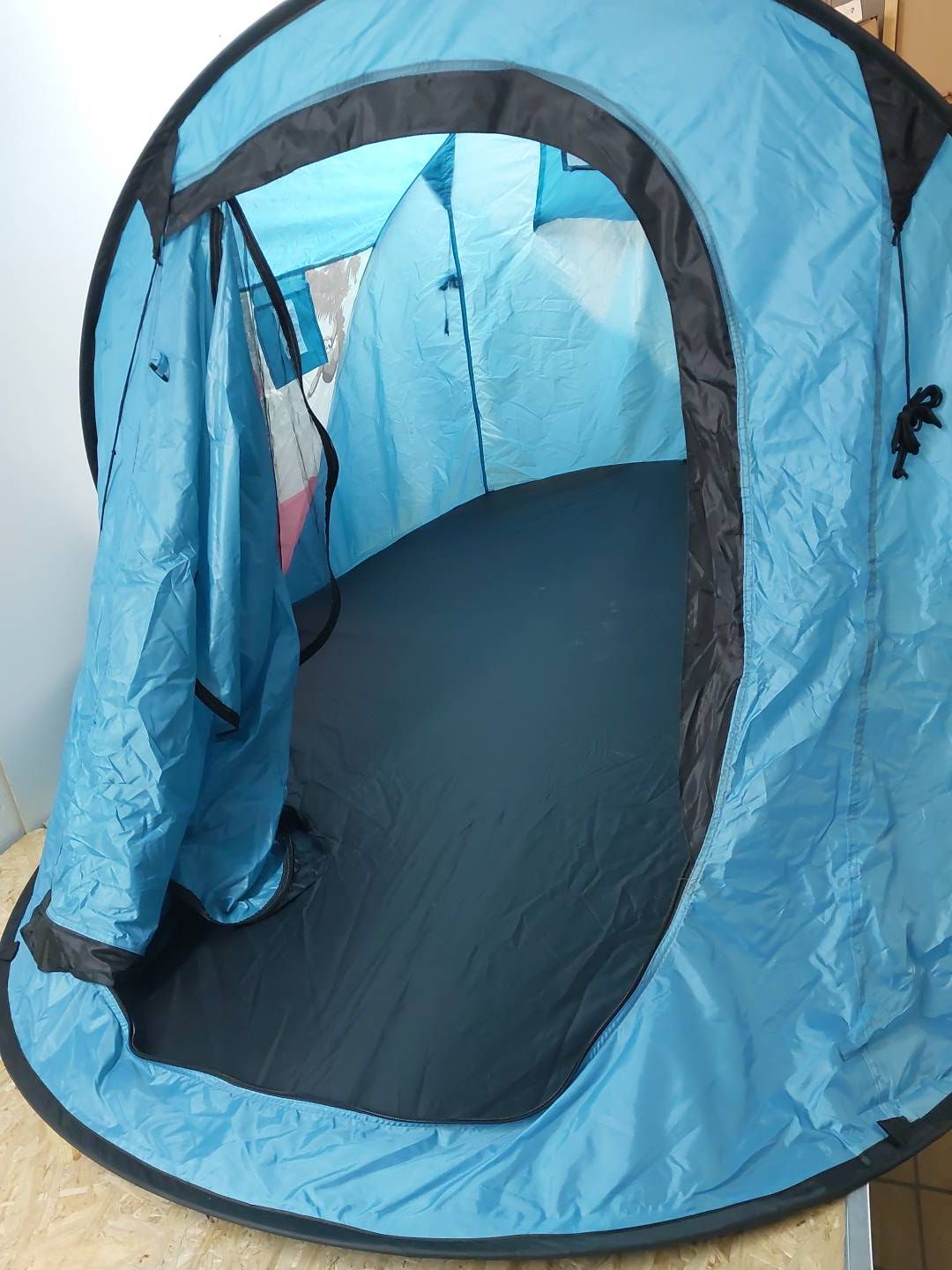 NAMIOT POSIADA DWA MAŁE ROZDARCIA MATERIAŁU NA PAŁĄKU (2 OSTATNIE ZDJĘCIA), JEST LEKKO PRZYBRUDZONY