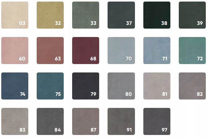 - Rodzaj tkaniny: tkanina Solo (velvet), tkanina Cloud (velvet)