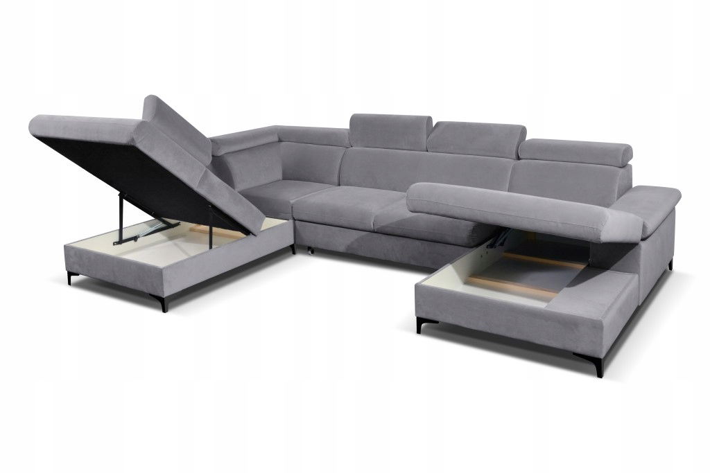 APRILLA U to wyjątkowa elegancja w prostej formie. Wysokie nogi unoszące mebel nad podłogę dodają lekkości i podkreślają jego formę. Połączenie sprężyny falistej i wysokiej jakości pianki sprawia, iż siedziska charakteryzują się bardzo wysokim komfortem. Dodatkowym atutem tego modelu są zagłówki z 6-stopniową regulacją oraz wygodne podłokietniki. Indywidualne dostosowanie wysokości zagłówka sprawi, że zapomnisz o bólu pleców czy karku. Automat funkcji spania również obijamy wybraną tkaniną!
