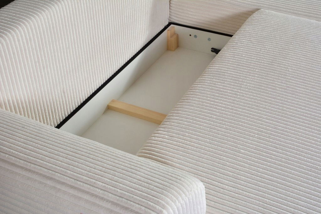 Narożnik Enzo z funkcją spania i pojemnik na pościel strona prawa do salonu