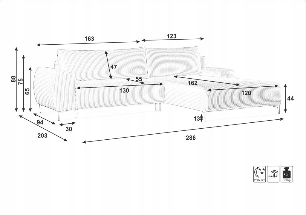 Narożnik Enzo posiada Mechanizm 3DL pozwala na szybkie i łatwe rozkładanie narożnika, przekształcając go w wygodne łóżko do spania. Dzięki luźnym poduszkom możesz dostosować oparcie do własnych potrzeb, uzyskując idealny komfort podczas odpoczynku. Pojemnik na pościel to praktyczna opcja, która pomoże Ci utrzymać porządek i przechować koce, poduszki oraz inne drobiazgi. Narożnik został wykonany z wytrwałego sztruksowego materiału, który nadaje mu przytulny, ale zarazem elegancki charakter. Solidna rama z wysokiej jakości drewna oraz wypełnienie z pianki PU i sprężyn falistych zapewniają trwałość oraz wygodę użytkowania przez długie lata.