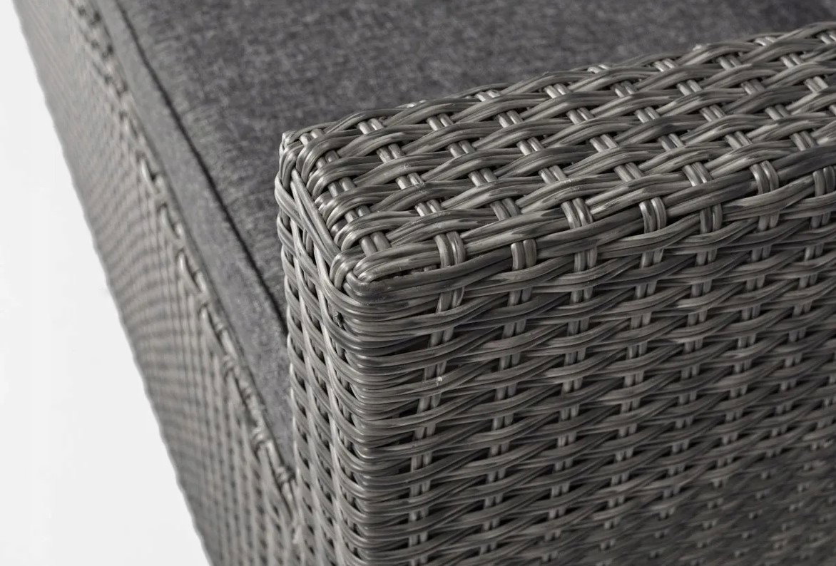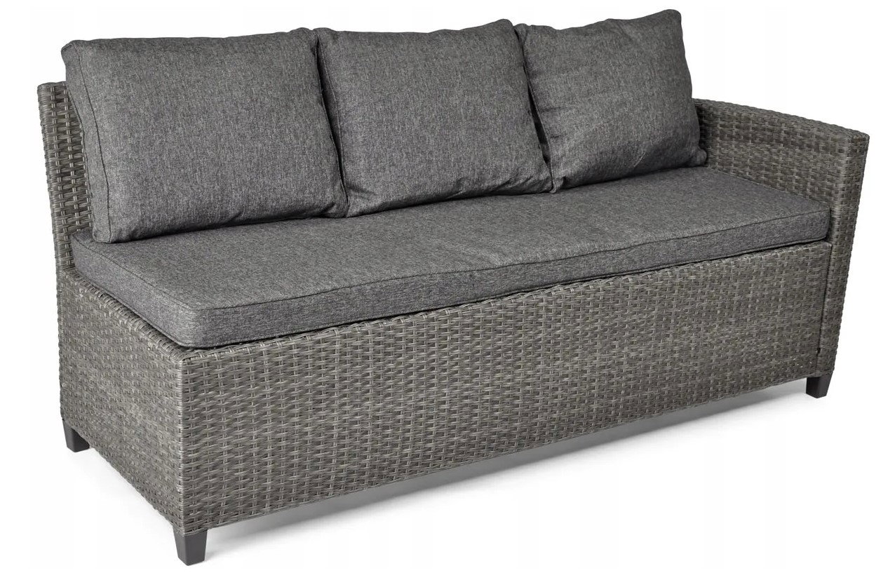 Narożnik ogrodowy składa się z dwóch modułów, są to dwie wygodne sofy 3-osobowe. Moduły można złączyć ze sobą w narożnik za pomocą łączników wchodzących w skład zestawu lub ustawić oddzielnie jako dwie kanapy.