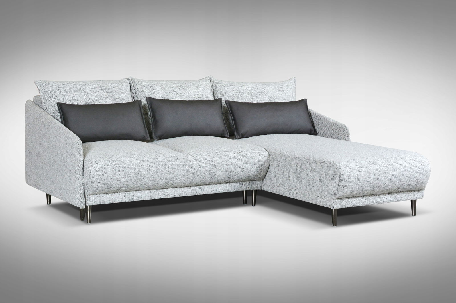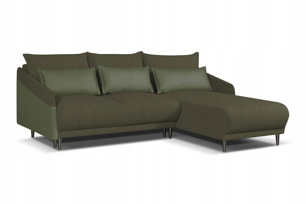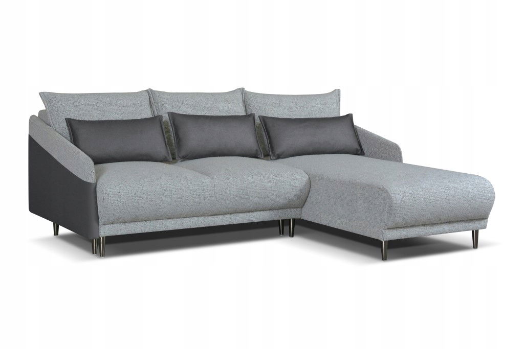 Elegancki narożnik Selle to połączenie, komfortu i praktyczności, które idealnie wpisuje się w każde wnętrze. Jego nowoczesny kształt oraz modna tapicerka przyciągają uwagę, stanowiąc centralny punkt salonu. Dzięki funkcji spania z mechanizmem 3DL, łatwo przekształcisz go w wygodne łóżko. Luźne poduszki zapewniają dodatkowy komfort i umożliwiają dopasowanie oparcia do indywidualnych potrzeb, a pojemnik na pościel pomoże utrzymać porządek w pomieszczeniu.