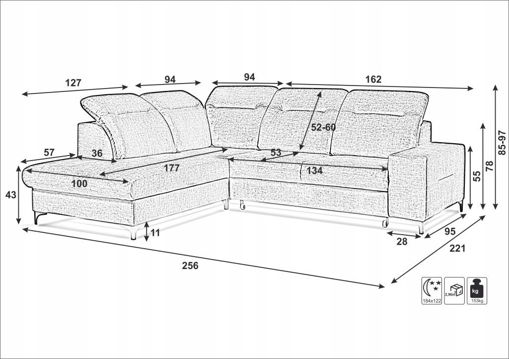 Funkcjonalny i wygodny narożnik Valentino wykonany w stylu skandynawskim o minimalistycznej bryle ciemnych nogach, pięknych przeszyciach oraz regulowane zagłówki które podkreślają jego urok, elegancję oraz lekkość. Siedziska narożnika wykonane są z wysokiej jakości pianki oraz sprężyny falistej przez co odczuwamy większy komfort siedzenia. Oparcie w formie 3 ruchomych poduszek ( w zestawie) Podłokietniki poza nowoczesnym wyglądem są bardzo wygodne o komfortowe dzięki miękki piankom. Poduszki oraz boki wykończone są lamówką sprawiając że narożnik staje się wyjątkowy i niepowtarzalny. Narożnik posiada funkcje spania oraz praktyczny pojemniki na pościel. Automat funkcji spania również jest obity tkaniną!