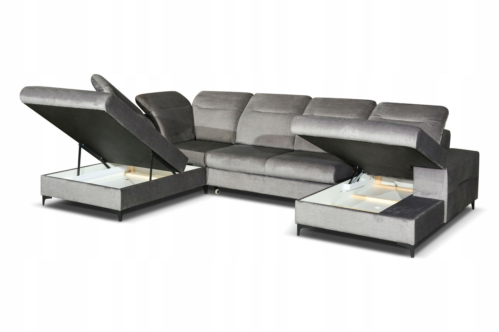 Narożnik Valentino U z funkcją spania z regulacją zagłówków strona prawa