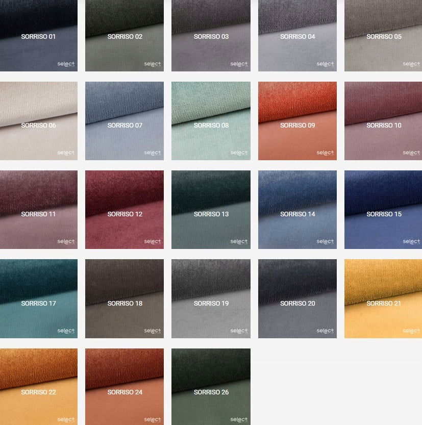 - Rodzaj tkaniny: tkanina Vogue (welur), tkanina Sorriso (welur)