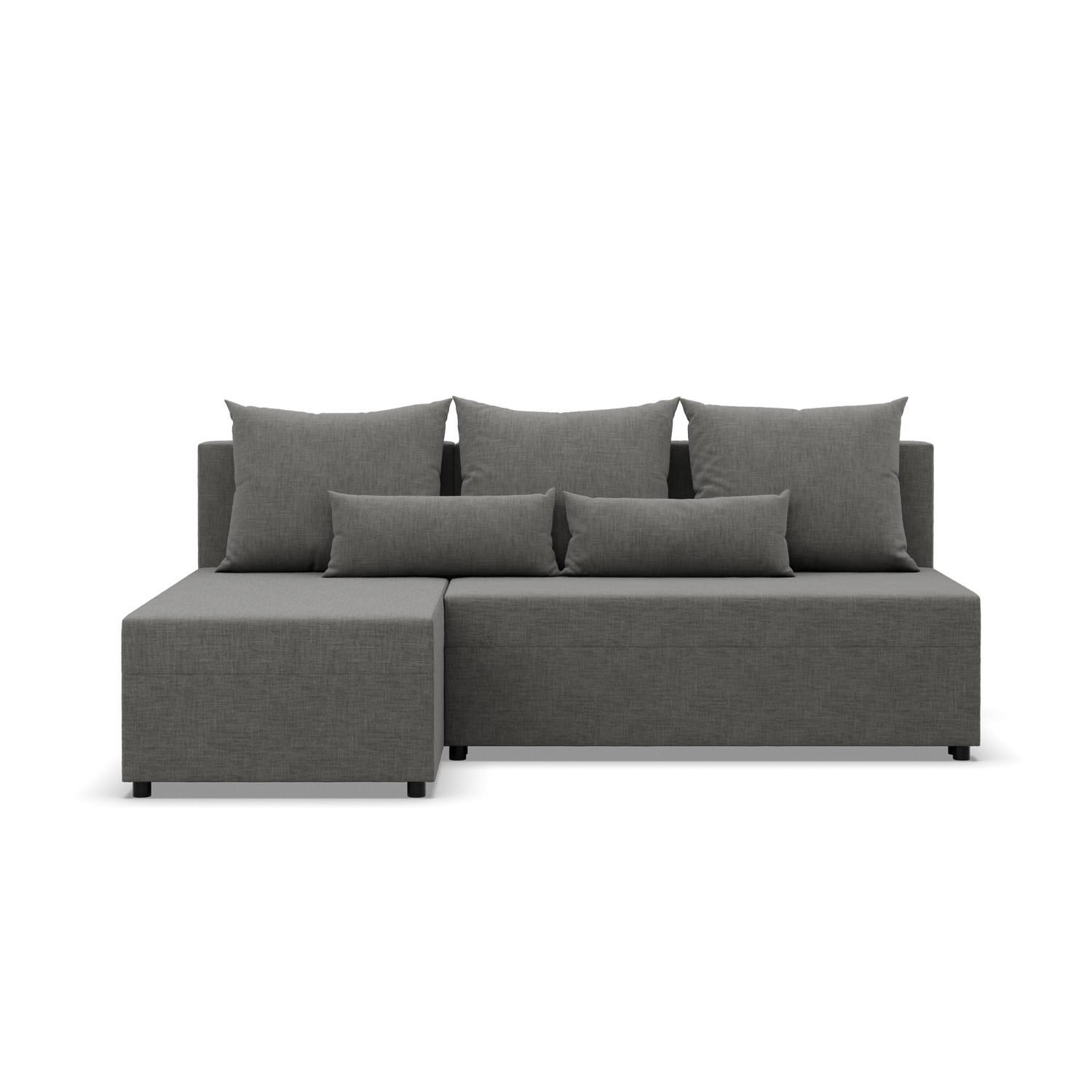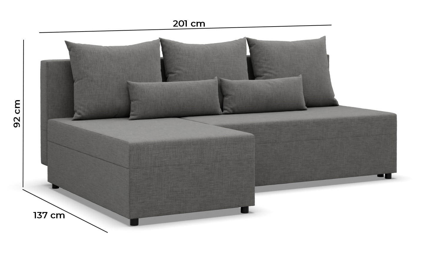 Narożnik z luźnymi poduszkami, Vista, 201x137x92 cm, ciemny szary. Narożnik VISTA to niezwykle praktyczne i stylowe rozwiązanie dla tych, którzy poszukują prostego, a jednocześnie funkcjonalnego mebla do mniejszego pomieszczenia. Jego minimalistyczny design oraz kompaktowy rozmiar sprawiają, że doskonale pasuje zarówno do salonu, jak i pokoju dziennego.