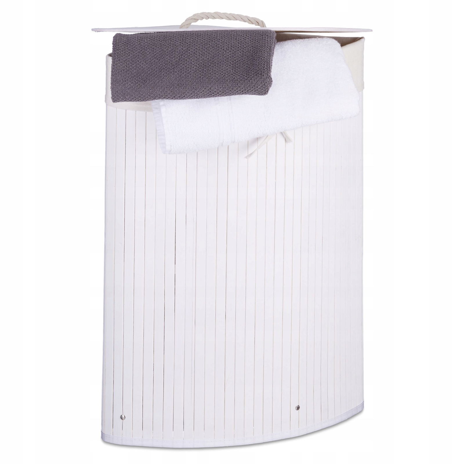 Narożny wolnostojący kosz na pranie Relaxday 60l biały bambusowy