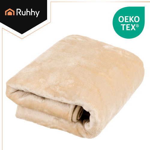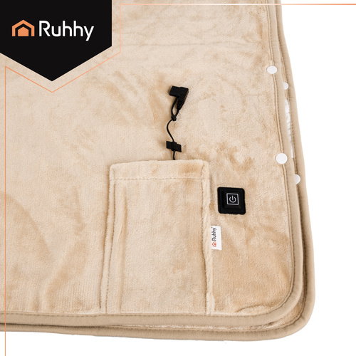 Narzuta elektryczna na plecy ramiona RUHHY zasilana na powerbank, koc 160x90 cm, miękka beżowa – technologia ciepła, która otula i relaksuje