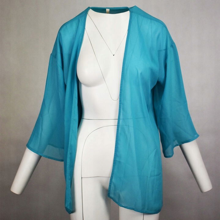 Lekka i zwiewna narzutka damska w niebieskim kolorze od Bershka – idealna na letnie dni. To doskonały wybór na plażę, spacery przy promenadzie czy na wakacyjne wyjazdy. Jej luźny krój i delikatny materiał zapewniają komfort noszenia oraz świetnie uzupełniają letnie stylizacje. Rozmiar S sprawia, że narzutka doskonale leży na osobach o drobnej sylwetce.