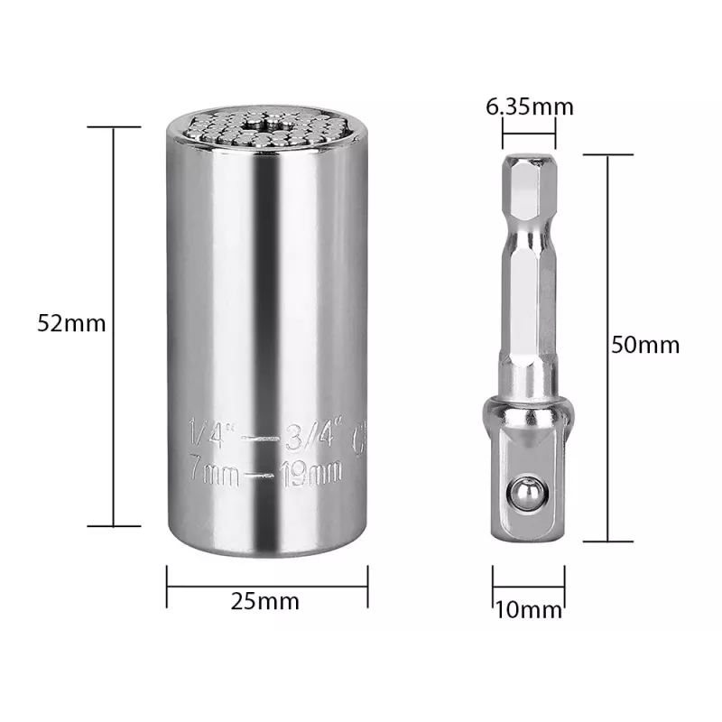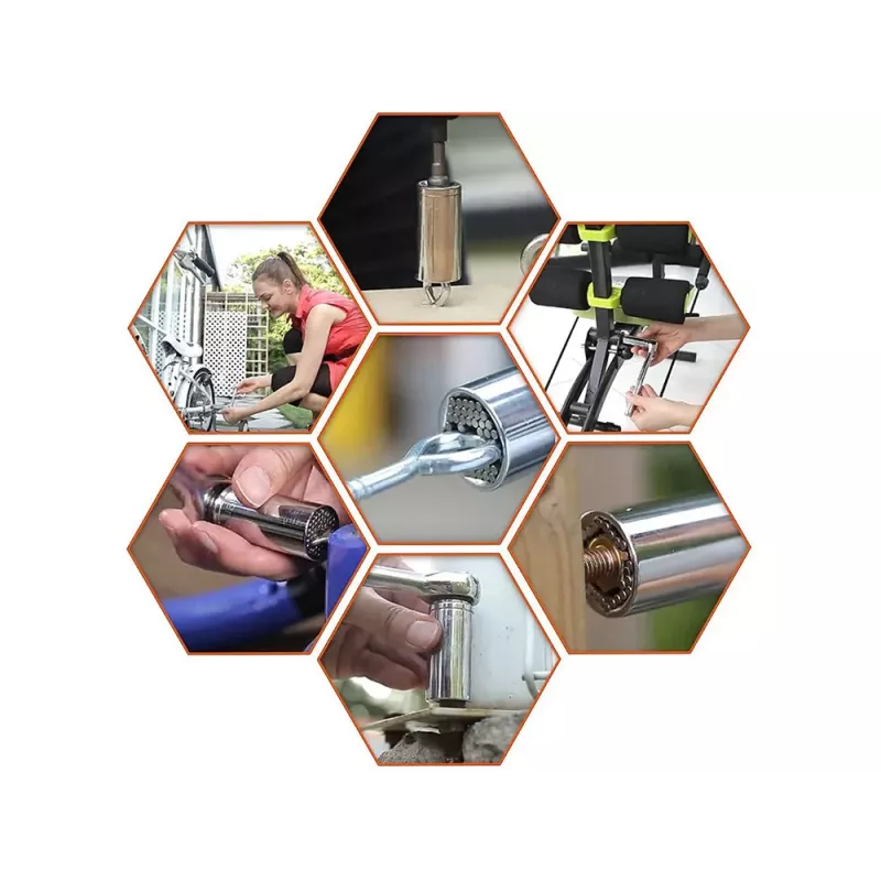 Uniwersalny klucz nasadowy 7-19 mm typu igiełkowego pasuje do wielu rodzajów łbów. Posiada specjalne metalowe pręty, które dostosowują się do przedmiotu. Wykonana z mocnej stali chromowo - wanadowej CR-V. Służy do odkręcania śrub i wkrętów o różnym kształcie łbów, w tym wyrobionych, oraz nietypowych