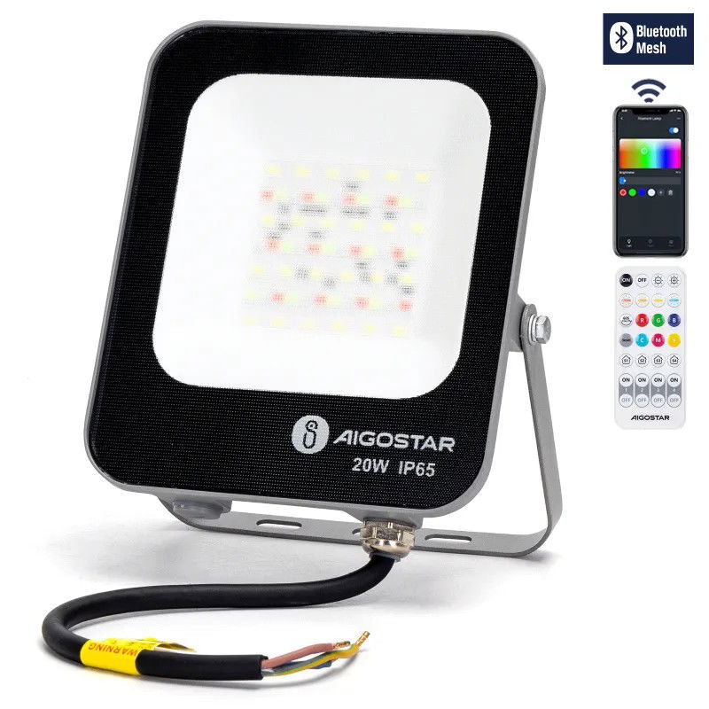 Czarny inteligentny reflektor do oświetlenia 20W RGB +W IP65, sterowanie aplikacją lub z pilota. Po podłączeniu do bramki mesh można sterować przez internet. Będzie wtedy elementem inteligentnego ekosystemu. Parametry techniczne: