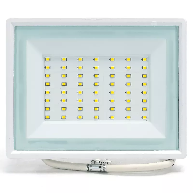 Reflektor zewnętrzny wykorzystujący wysokiej jakości chipy LED wysoka jasność, duża oszczędność energii i długa żywotność. Zewnętrzny reflektor LED o mocy 50 W i neutralnej barwie światła może zastąpić tradycyjną żarówkę o mocy 200 W, oszczędzając ponad 85% energii i oszczędzając pieniądze na rachunkach za prąd.