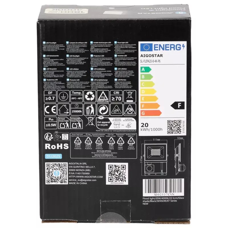 - 1 x panel LED 20W/230V, z wbudowanym czujnikiem
