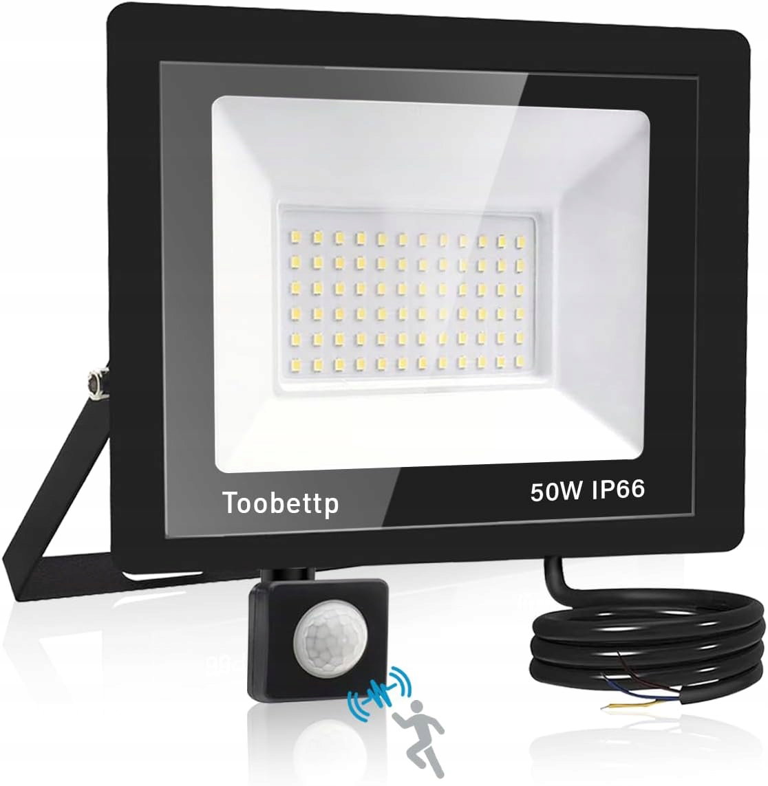Reflektor LED z czujnikiem ruchu 50 W, ciepła biel, 5000 lm, zewnętrzna lampa punktowa LED 3500 K, wodoodporna IP66, do ogrodu, garażu, patio, fabryk, stadionów [Klasa energetyczna F]