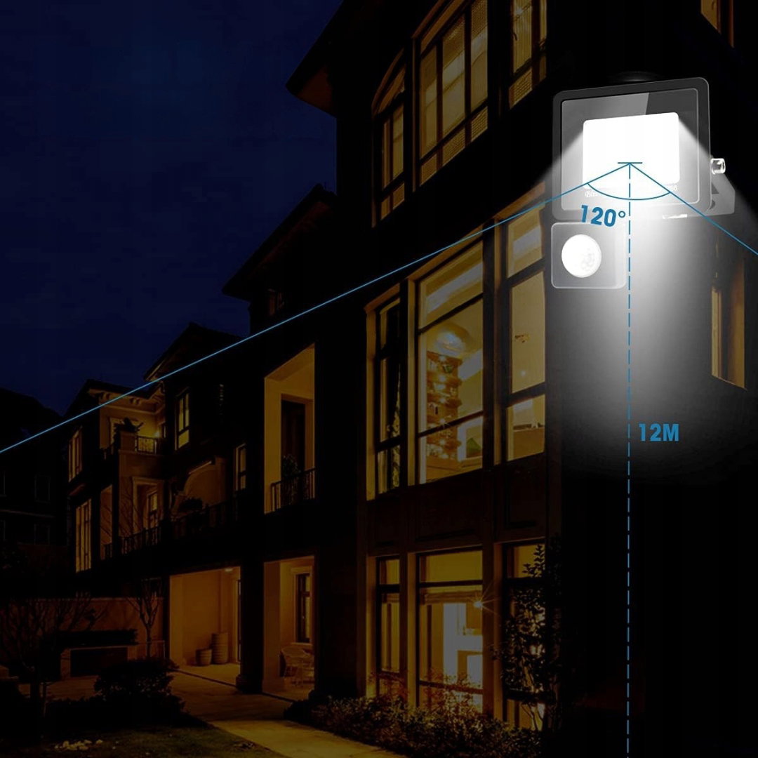 - Zastosowanie: reflektor LED z czujnikiem ruchu służy do automatycznego oświetlania przestrzeni po wykryciu ruchu, zwiększając bezpieczeństwo i widoczność w miejscach zarówno wewnętrznych, jak i zewnętrznych. Umożliwia precyzyjne dostosowanie czasu świecenia, zasięgu wykrywania oraz czułości światła, co pozwala na efektywne wykorzystanie energii. Może być stosowany do oświetlenia ogrodów, parkingów, boisk, korytarzy czy wejść, zapewniając wygodne i bezpieczne użytkowanie.