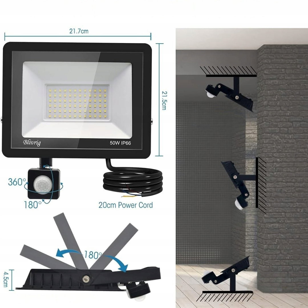 - Szerokie zastosowanie: reflektor punktowy LED z czujnikiem ruchu do użytku na świeżym powietrzu. Łatwy w montażu, idealny do wnętrz i przestrzeni zewnętrznych, takich jak sufit, ściana, podłoga, boisko do koszykówki, boisko piłkarskie, ogród, hotel, parking czy teren rekreacyjny.
