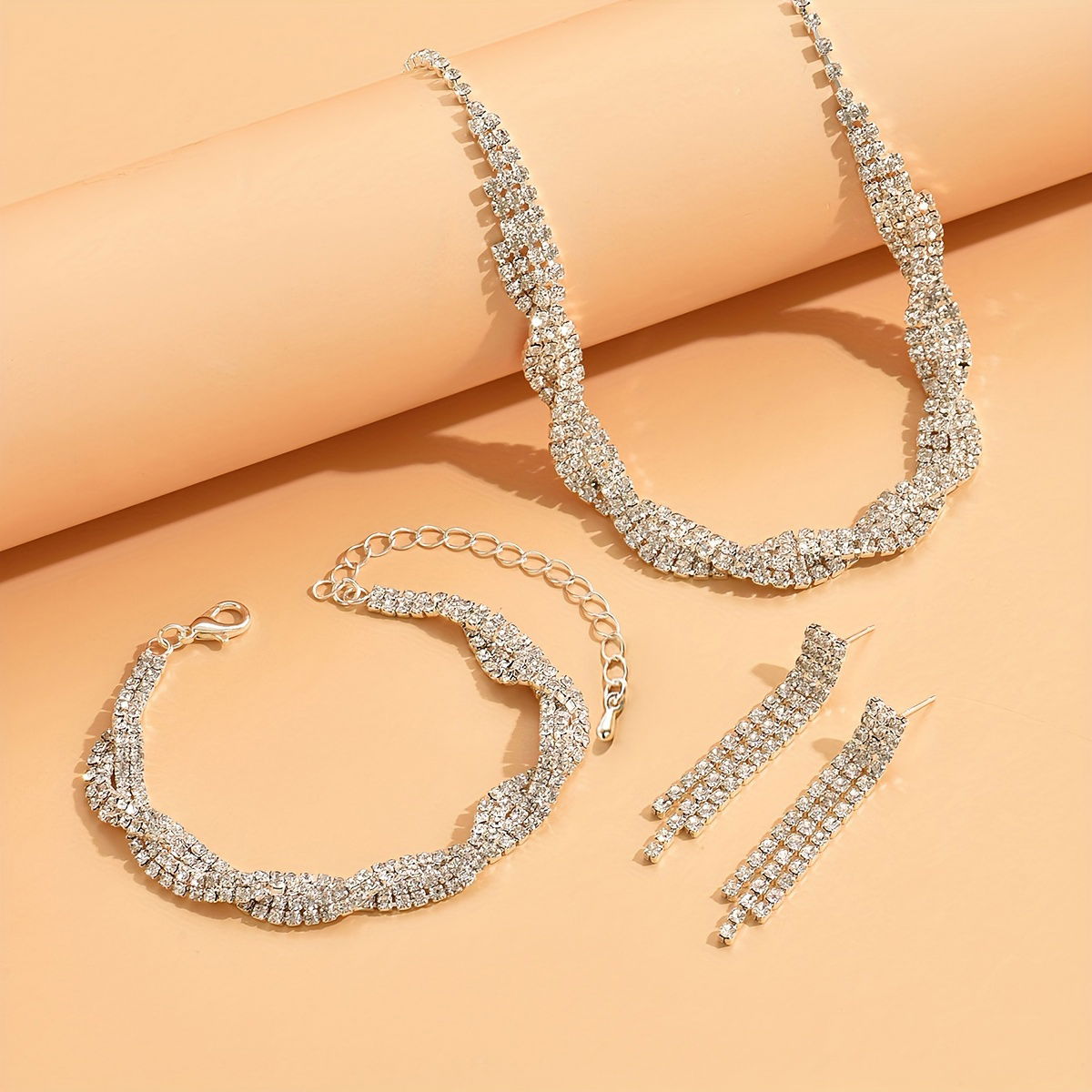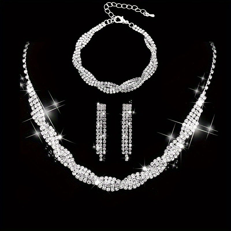 Zestaw Kolczyki Naszyjnik Bransoletka Ślub Srebrny Cyrkonie Kryształy