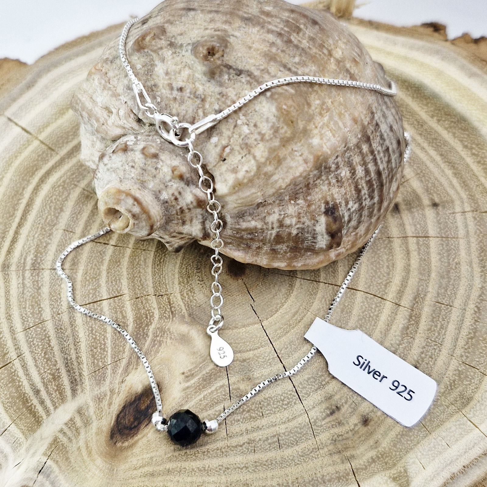 PIĘKNY NASZYJNIK Z NATURALNYM KAMIENIEM - CZARNYM TURMALINEM SREBRO 925