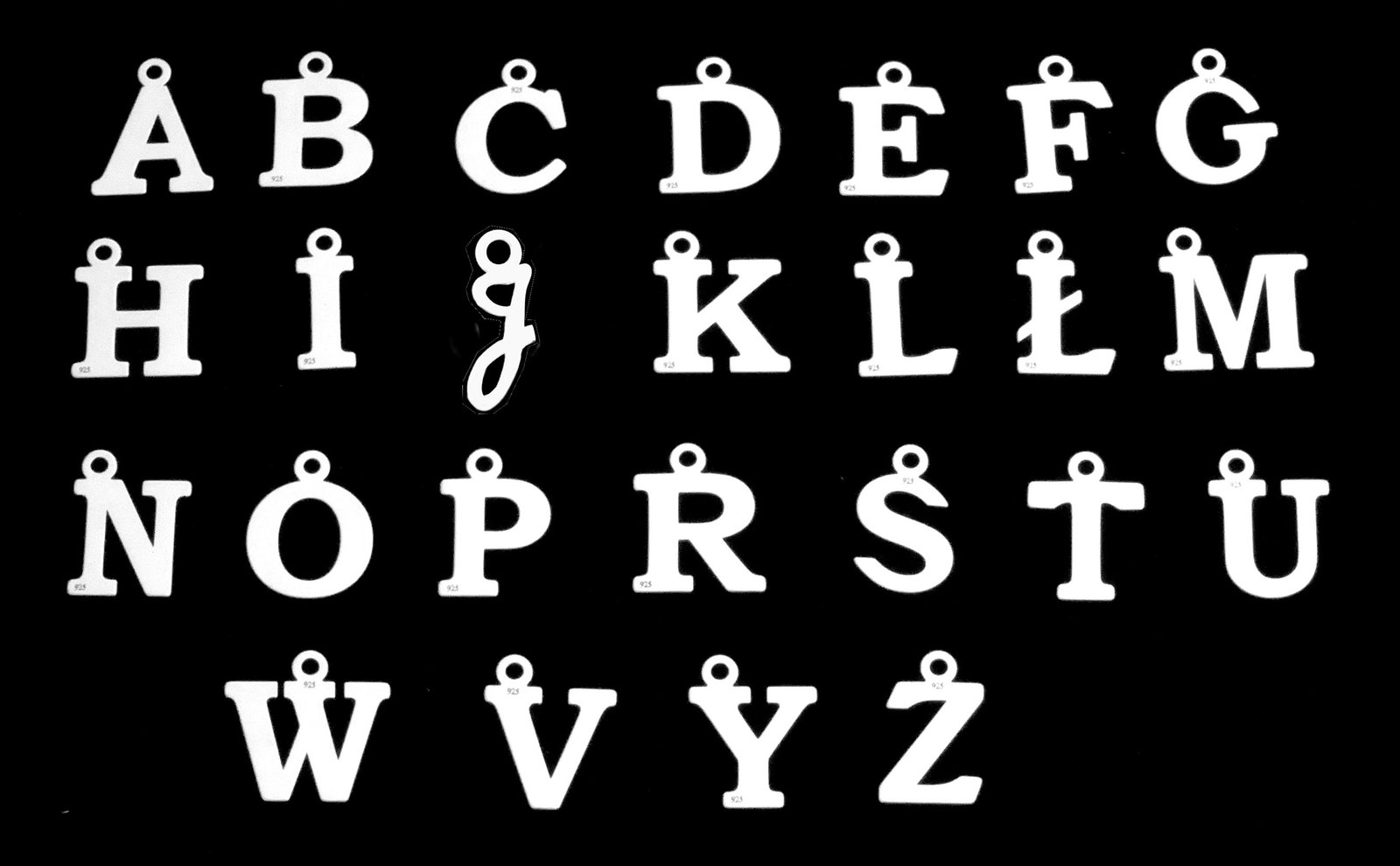Wielkość zawieszki literki: ~14 mm x 10 mm