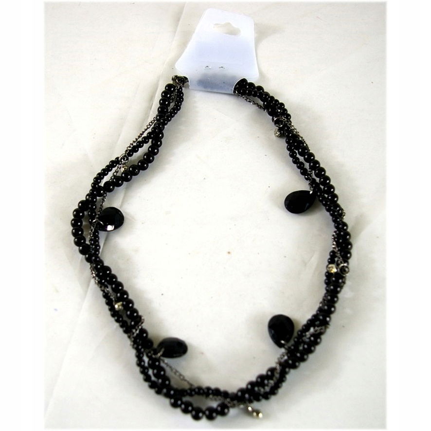 Naszyjnik z perłami, kryształkami i łańcuszkiem, 25 cm, biały/czarny.