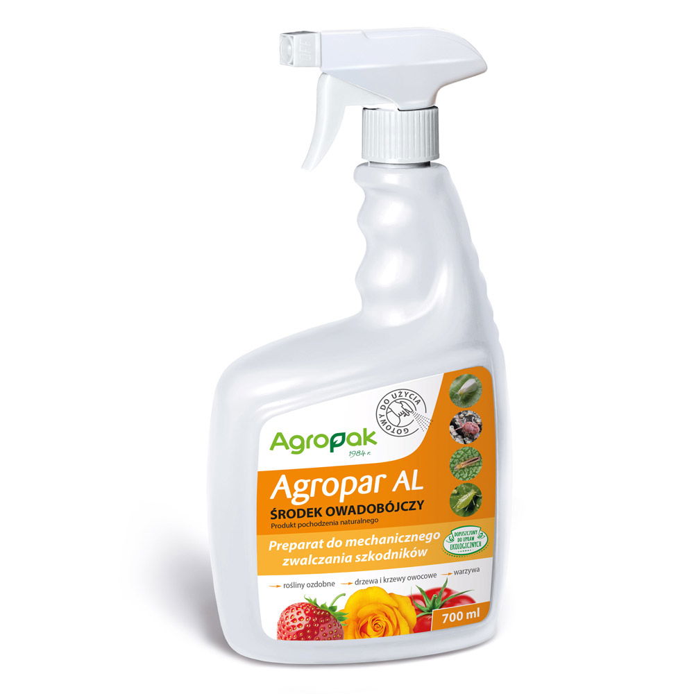 Agropar® AL naturalny, gotowy do użycia preparat o działaniu kontaktowym, przeznaczony do zwalczania szkodników (w sposób fizyczny) występujących na roślinach ozdobnych, warzywach, drzewach i krzewach owocowych. Zawiera olej rydzowy pochodzący z lnicznika siewnego (Camelina sativa). Produkt tworzy na opryskanej roślinie cienką, lepką powłokę uniemożliwiającą przemieszczanie się i żerowanie szkodników doprowadzając do ich wyginięcia. Skutecznie zwalcza między innymi: przędziorki, mszyce, miseczniki, wciornastki, szpeciele, miodówki, wełnowce, ochojniki, mączliki.