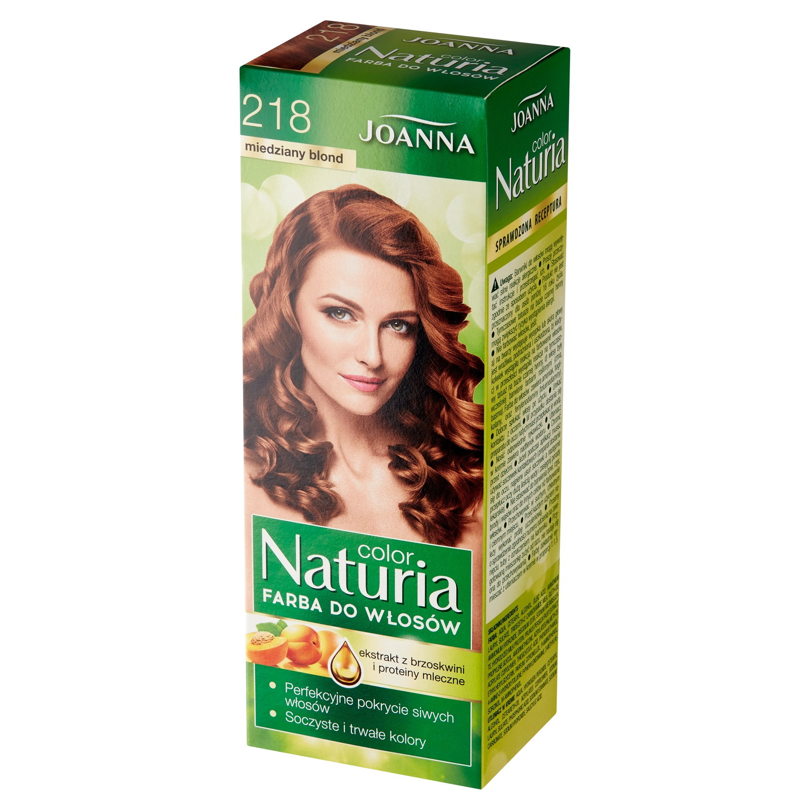 Farba Naturia Color w odcieniu Miedziany blond nr 218 to wyjątkowy, ciepły odcień ciemnego blondu z głęboką nutą miedzianego brązu. Idealny kolor dla tych, którzy marzą o subtelnym, ale jednocześnie nietuzinkowym efekcie.