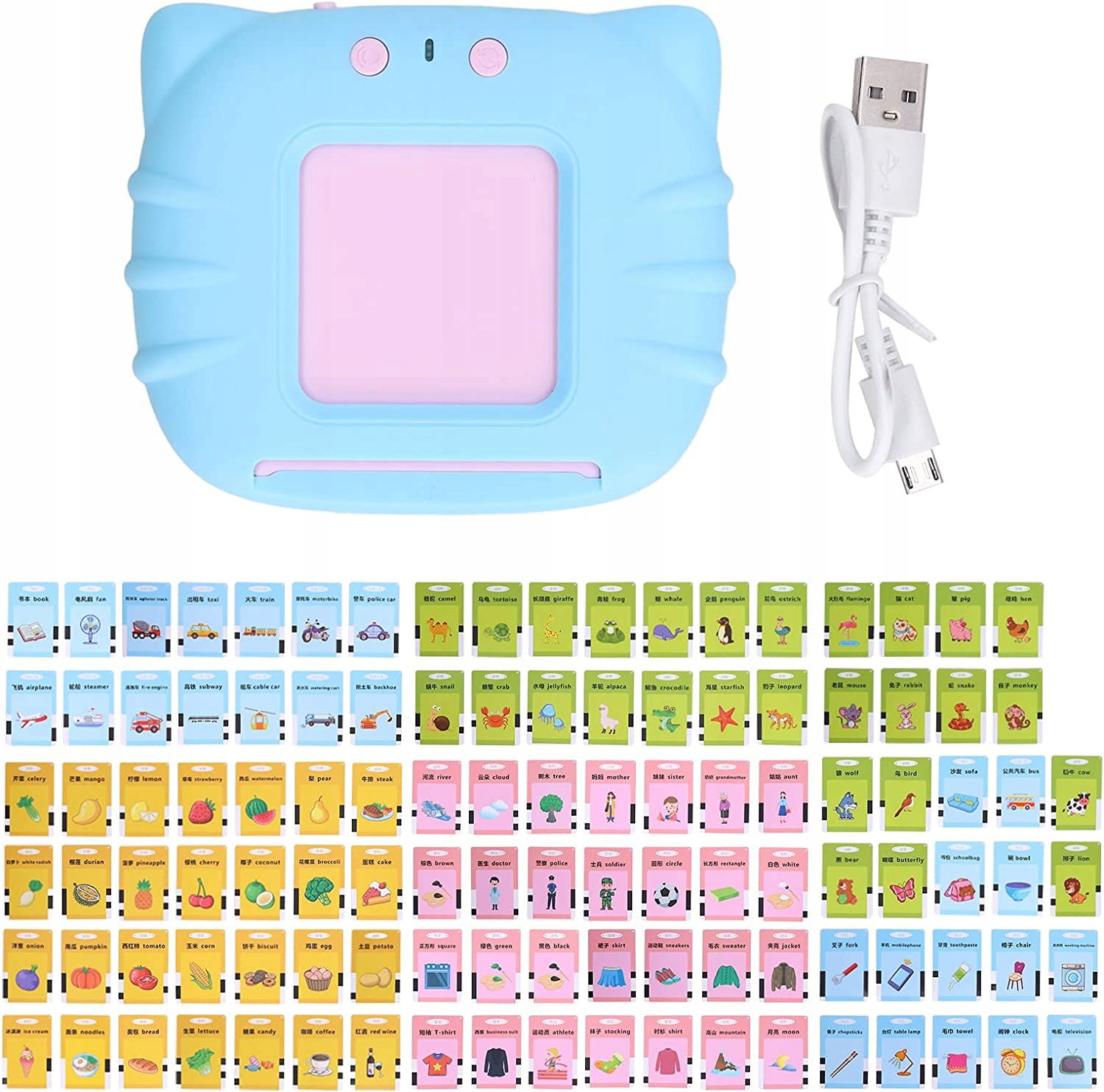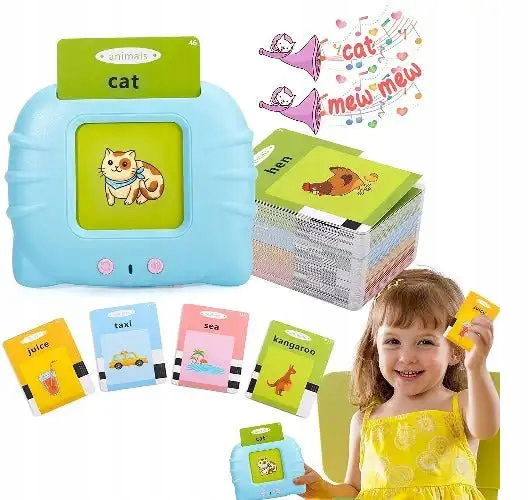 Nauka języka angielskiego czytnik kart do nauki słówek fiszki niebieski