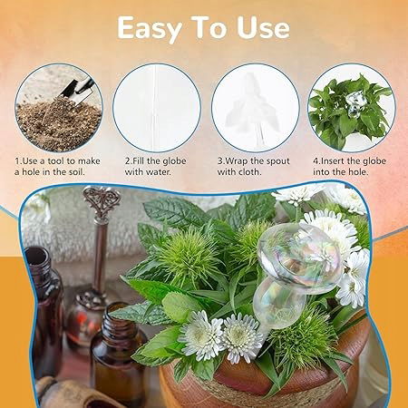 Szklany dozownik wody: kula do podlewania jest wykonana z wysokiej jakości szkła, a zatem jest bardzo trwała. Przezroczysta konstrukcja pozwala na monitorowanie poziomu wody i optymalizację podlewania.