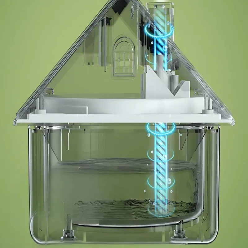 Jego oryginalny design w formie domku sprawia, że staje się również ciekawym elementem dekoracyjnym. Urządzenie jest wyposażone w dużą pojemność zbiornika, co pozwala na długotrwałe działanie bez częstego uzupełniania wody.