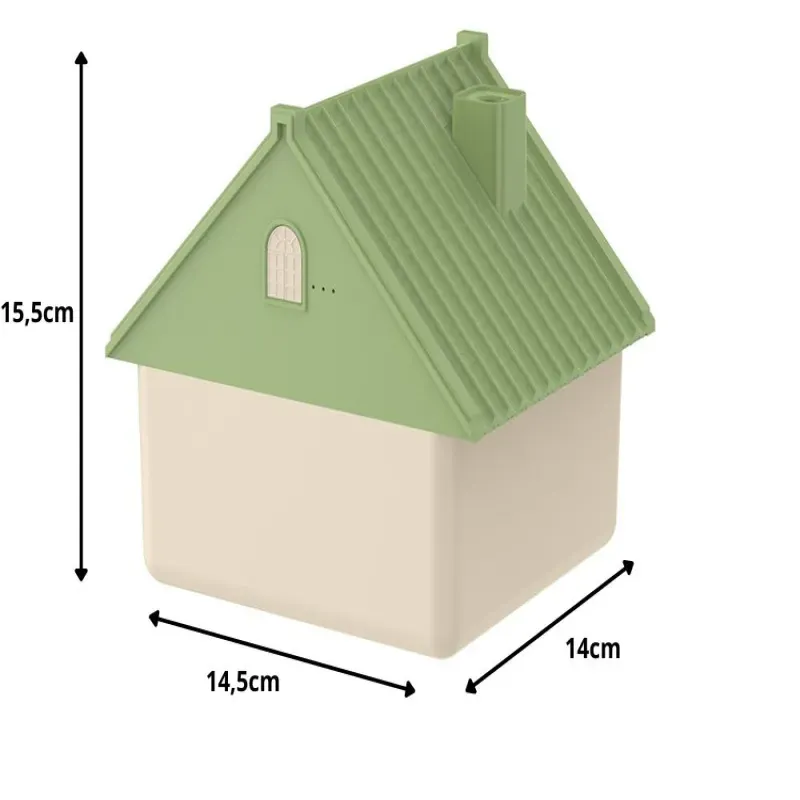 Nawilżacz powietrza w kształcie domku o pojemności 1 litra to stylowe i funkcjonalne urządzenie, które skutecznie nawilża powietrze, poprawiając komfort oddychania w pomieszczeniu.