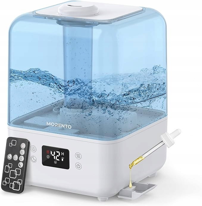 ✅ Marka: MORENTO✅ Pojemność: 4.5 litra✅ Funkcje: Nawilżanie, dyfuzor olejków eterycznych, lampka nocna✅ Sterowanie: Pilot, panel dotykowy, wyświetlacz LED, timer✅ Cechy: Napełnianie od góry (Top-Fill), kontrola wilgotności, cicha praca✅ Przeznaczenie: Sypialnia, pokój dziecka, biuro