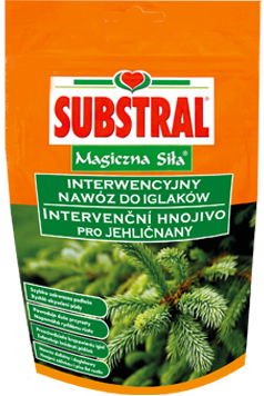 Seria Magiczna Siła przeznaczona jest dla osób, które uwielbiają pielęgnować swój ogród oraz podziwiać efekty swojej pracy. Nawozy Magiczna Siła można stosować raz w tygodniu (ewentualnie przy każdym podlewaniu). Szczególnie polecamy do roślin zaniedbanych i wymagających pilnej interwencji. Substral Magiczna Siła do iglaków to specjalistyczny nawóz interwencyjny o profesjonalnej jakości, szybko zakwasza podłoże, powoduje duże przyrosty oraz przeciwdziała brązowieniu igieł. Magiczna Siła do iglaków to wysoko wydajny koncentrat (opakowanie wystarcza na przygotowanie aż 175 litrów nawozu) dzięki, któremu łączymy podlewanie z nawożeniem - nawóz jest w 100% rozpuszczalny w wodzie. Specjalna mieszanka bogata w makro i mikroelementy zaspokoi wszystkie potrzeby Twoich roślin kwaśnolubnych takich jak: iglaki, rododendrony, azalie, różaneczniki, wrzośce, borówka amerykańska, żurawina, orchidea, kamelia czy magnolia. Zastosowanie: Specjalistyczny wysokowydajny koncentrat przeznaczony do zasilania roślin kwaśnolubnych. Idealnie sprawdzi się do: - sadzenia i przesadzania młodych roślin - szybko zakwasza podłoże - nawożenia roślin słabo rozwiniętych, zaniedbanych, wymagających specjalnej troski - walki z brązowieniem igieł, jako ratunek dla słabo wykształconego kwiatostanu Sposób użycia: Rośliny nawozimy przy każdym podlewaniu w okresie od marca do sierpnia, istnieją dwa sposoby dostarczenia składników pokarmowych zawartych w nawozie: - Nawożenie zasadnicze (doglebowe): przez cały okres wegetacji, uzyskujemy w ten sposób szybkie przyrosty, dwa razy w miesiącu podlewamy wokół korzeni. - Nawożenie dolistne (interwencyjne): w przypadku gdy rośliny słabo rosną, nie kwitną i wymagają specjalnej troski polewamy igły/liście. Proszek należy rozpuścić w konewce lub zastosować specjalny dozownik Magiczna Siła. Dawkowanie: - Nawożenie zasadnicze (doglebowe): 2 g na 1 l wody (cztery łyżeczki na konewkę 10 L) dwa razy w miesiącu - Nawożenie dolistne (interwencyjne), brązowienie igieł: 1 g na 1 l (dwie łyżeczki na 10 L) raz w tygodniu Typ nawozu: WE NPK 23+09+12 z mieszaniną mikroelementów Opakowanie: 350g
