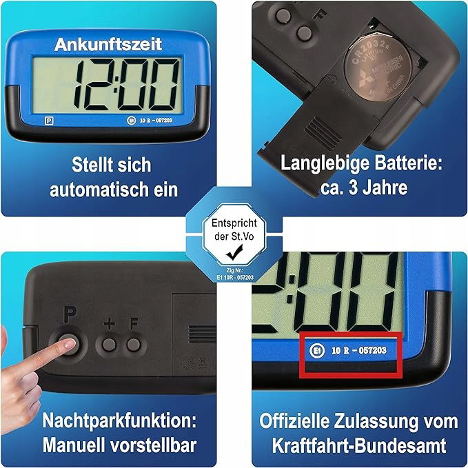 FUNKCJA PARKU NOCNEGO - Jeśli strefa parkowania rozpocznie się następnego dnia rano, parkomat samochodowy można wyświetlić ręcznie. Podobnie zegar automatycznie przełącza się na czas letni lub zimowy (można go wyłączyć)