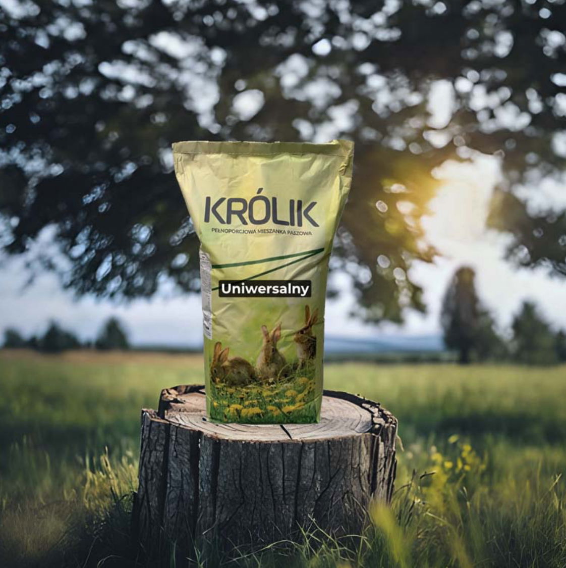Królik UNIWERSALNY to wysokiej jakości mieszanka paszowa przeznaczona dla królików-matek oraz królików w drugim okresie tuczu. Jej zróżnicowana, a zarazem prosta receptura sprawia, że jest chętnie pobierana przez króliki, wspierając ich rozród, kondycję oraz jakość odchowanych młodych. Mieszanka jest starannie zbilansowana, aby skutecznie wpływać na zdrowie i wydajność stada, a dodatkowo nie zawiera kokcydiostatyków.