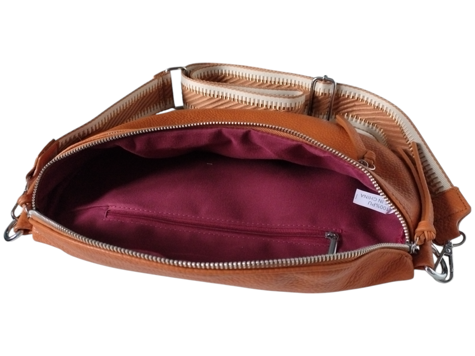 Informacja o Bespieczeństwie: Torebka do użytku codziennego. Nieodpowiednia dla dzieci – ryzyko uduszenia / skaleczenia małymi elementami i paskami. Używać zgodnie z przeznaczeniem. Nie przeciążać. Trzymać z dala od ognia i wysokiej temperatury. Czyszczenie wilgotną miękką ściereczką; nie prać; nie używać rozpuszczalników