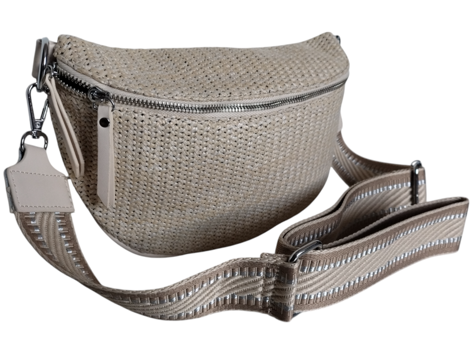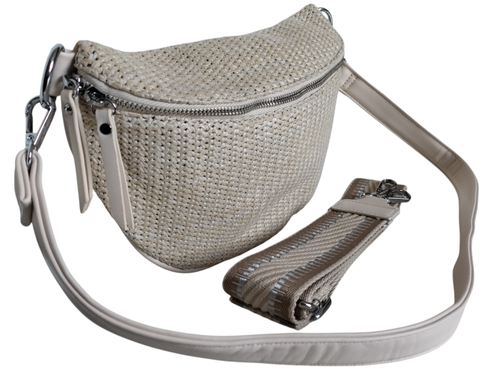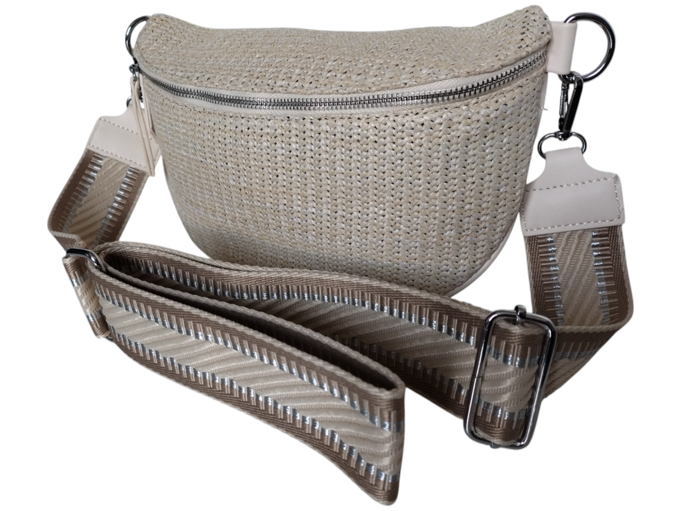 Nerka Damska na Ramię - Torebka Damska - Beżowa Saszetka z Wikliny 2 Paski