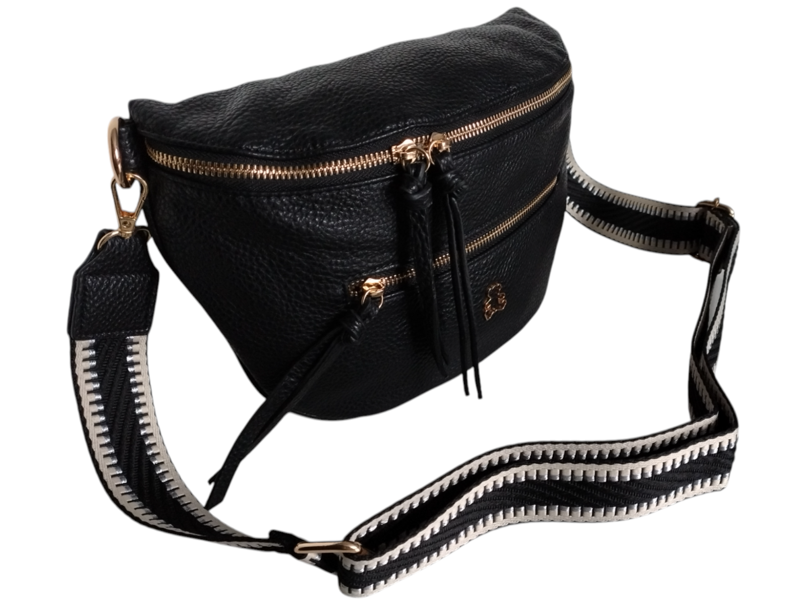 Nerka Damska na Ramię, Torebka Damska, Saszetka na Szerokim Pasku, Czarny
