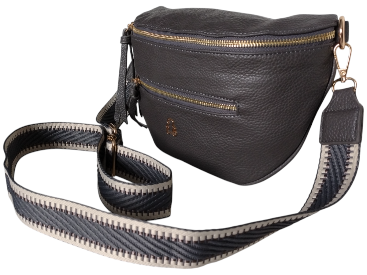 Nerka Damska na Ramię, Torebka Damska, Saszetka na Szerokim Pasku, Szary