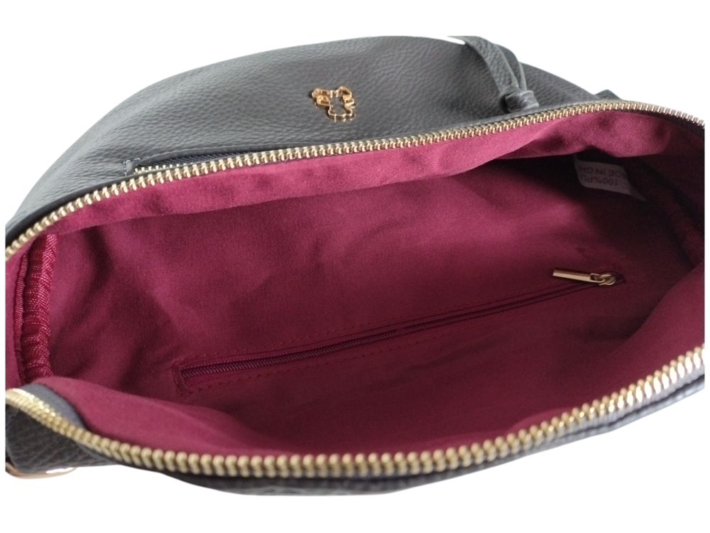 Informacja o Bespieczeństwie: Torebka do użytku codziennego. Nieodpowiednia dla dzieci – ryzyko uduszenia / skaleczenia małymi elementami i paskami. Używać zgodnie z przeznaczeniem. Nie przeciążać. Trzymać z dala od ognia i wysokiej temperatury. Czyszczenie wilgotną miękką ściereczką; nie prać; nie używać rozpuszczalników